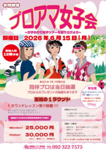 2026年6月15日(月) 女性限定!前回好評だったプロアマ女子会を今年も開催致します☆彡 プロとラウンドできる特別な1日✨